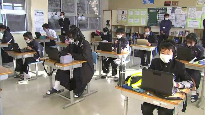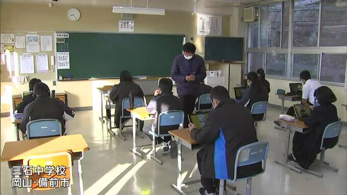 英語学習の効率を上げようとAIを搭載したアプリの活用を進めている備前市の中学校で自主学習の様子が公開されました。