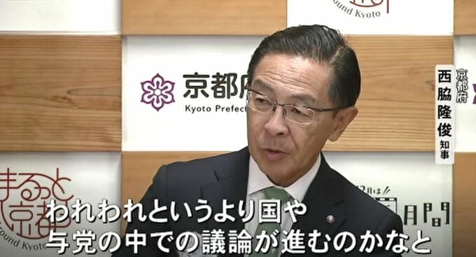 京都府・西脇隆俊知事は、「与党の枠組みが自民維新という形になり維新が示されたという意味においては、我々というより国や与党の中での議論が進むのかなという気はする」