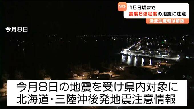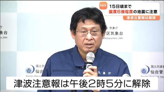津波注意報は午後2時5分にすべて解除されました。ただ、今回の地震は、12月8日夜遅くに同じく青森県東方沖で発生した地震の活動域で発生したため、仙台管区気象台は、12月15日頃までは、最大6強程度の地震に注意するよう呼びかけました。