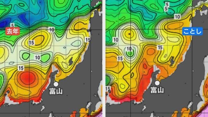 「沖合の方を南下してきてはいるんだけど、沖合の方を泳いでいってしまっている。富山県は沿岸の定置網が主体の漁業形態をしていますけれども、そこにかからずに沖合を通って、南下群が一部いってしまったか、それか大きな群れがまだ北のほうに留まっているか、その2つの可能性が考えられます」
