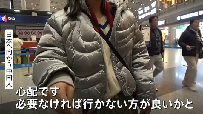 「日本行きの航空便のチェックイン手続きが行われています。多くの人が並んでいます」