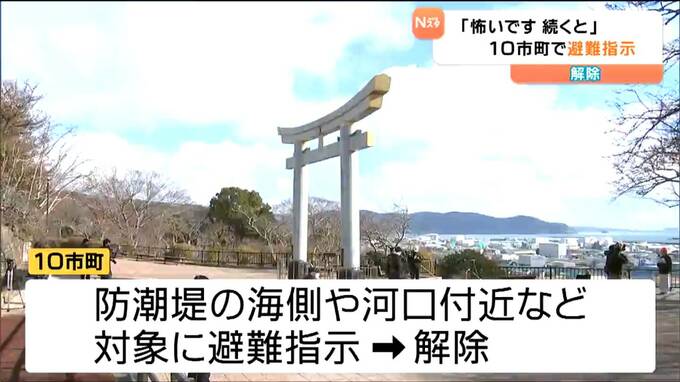 宮城県内では仙台市や石巻市、山元町など10の市と町で防潮堤の海側や川の河口付近などを対象に避難指示が出されましたが解除されています。