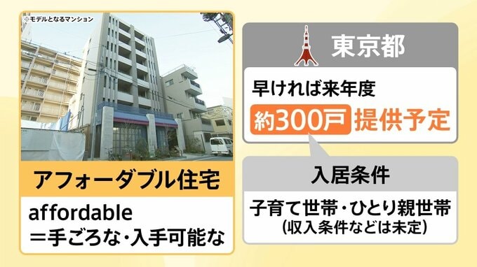 大都市を中心に住宅価格の高騰が続くなか、東京都が始めようとしているのが、手頃な家賃で住むことができる「アフォーダブル住宅」の提供です。