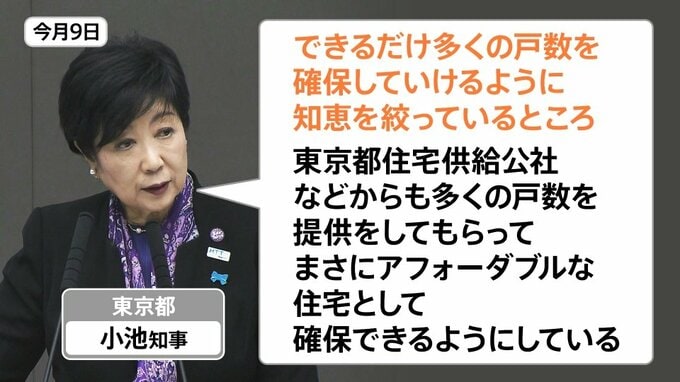 「できるだけ多くの戸数を確保していけるように、知恵を絞っているところ。東京都住宅供給公社などからも多くの戸数を提供をしてもらって、まさにアフォーダブルな住宅として確保できるようにしている」