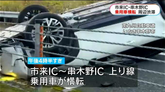 県警高速道路交通警察隊によりますと、12日午後4時半すぎ、南九州自動車道の市来インターと串木野インターの間の上り線で、乗用車が横転しました。