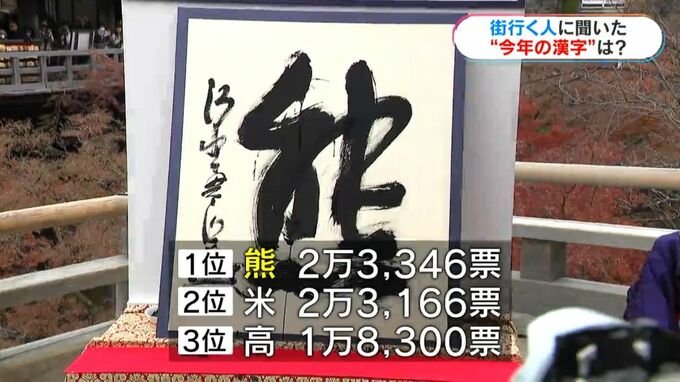 およそ19万票の応募から選ばれた「熊」。今年は日本各地で「熊」が出没。漢字で熊に猫と書くパンダが中国に返還されたことも話題となりました。