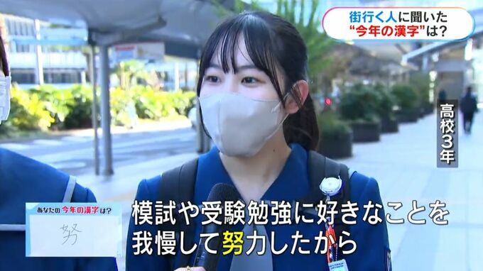 (高校3年・「努」)「模試や受験勉強に好きなことを我慢して努力したから。中学校の先生になりたいので勉強を頑張っている」