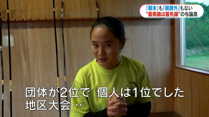 期末テストも朝課外もなし「当たり前」をなくした与論高校 ユニークな教育の背景に「島立ち」 南日本放送 2025年12月12日(金) 20:43 国内 (弓道部員)「お互い見合いながら、1人が立って、残りの2人がこここうじゃないあーじゃないと練習している」 そうした中でも・・・ (弓道部員)「団体が2位で、個人は1位でした。地区大会…」 弓道場には多くの表彰状が掲げられていました。