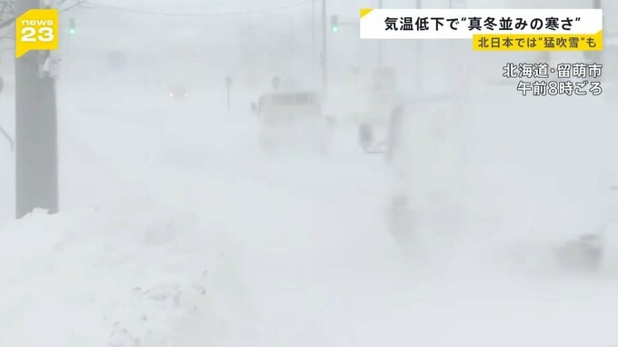 北海道・留萌市では吹雪で視界は白くかすみ、ほとんど見えない状況に。長野県・信濃町では住民たちが雪かきに追われました。