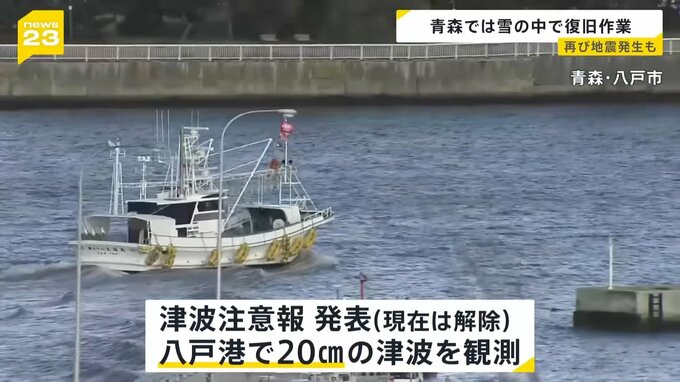 そんな中、再び地震が発生しました。この地震で八戸市やむつ市などの広い範囲で震度4を観測。一時、津波注意報も発表され、八戸港では20センチの津波を観測しました。