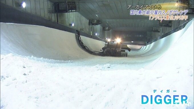 「ディガー」と呼ばれる専門スタッフが、この大きなアーチ型のアームを巧みに操りながら、ハーフパイプの形を整えていきますが、作業スピードは1分間に3メートル。