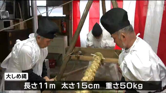大しめ縄9本を含む大小およそ800本のしめ縄が作られ、12月19日に神社の拝殿や鳥居に飾り付けるということです