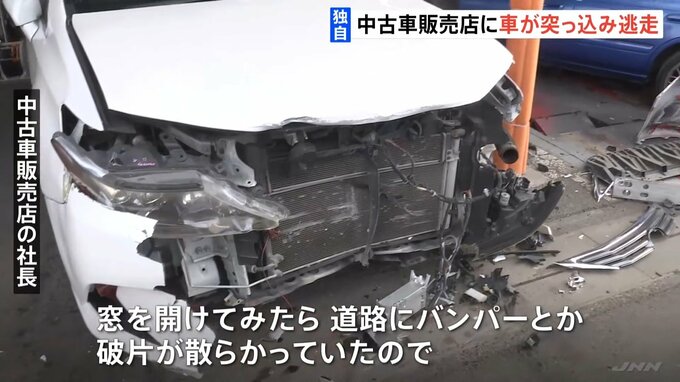 「ドーンと音がしたんですよ。窓を開けてみたら道路にバンパーとか破片が散らかっていたので、下りてきてみたらこんな光景だったので。(被害額は)500万円前後だと思います」