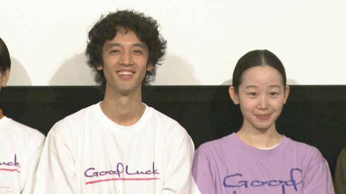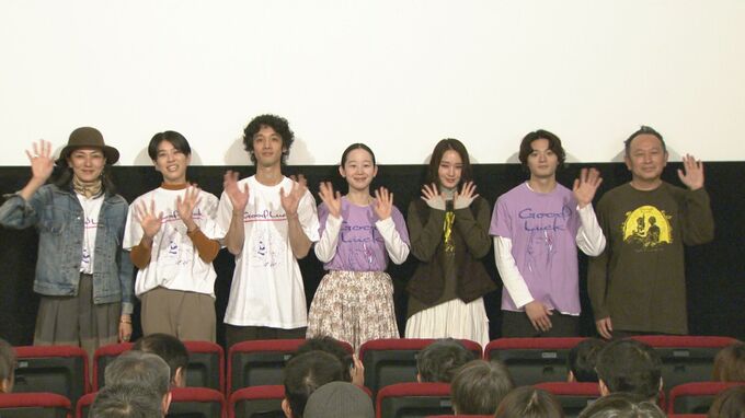 俳優の佐野弘樹さん、天野はなさん、加藤紗希さん、篠田諒さん、板谷由夏さん、剛力彩芽さん、足立紳監督が映画『Good Luck』の公開初日舞台挨拶に登壇しました。