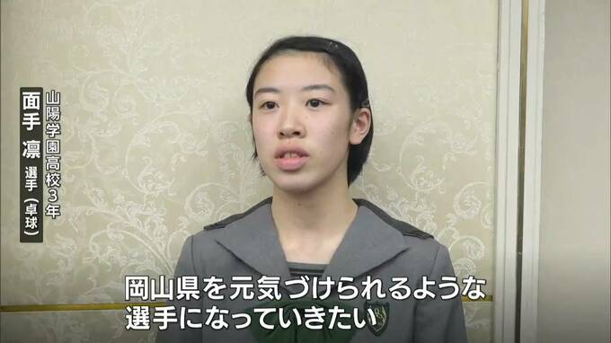 今年のインターハイ卓球女子シングルスを制した山陽学園高校の面手凛選手ら個人11人、関西高校ボート部など5団体が表彰されました。この賞は、全国大会などで優秀な成績を収めた個人や団体を表彰するものです。