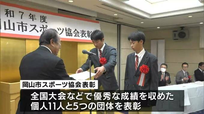 岡山市スポーツ協会が、全国大会などで優秀な成績を収めたスポーツ選手を表彰しました。