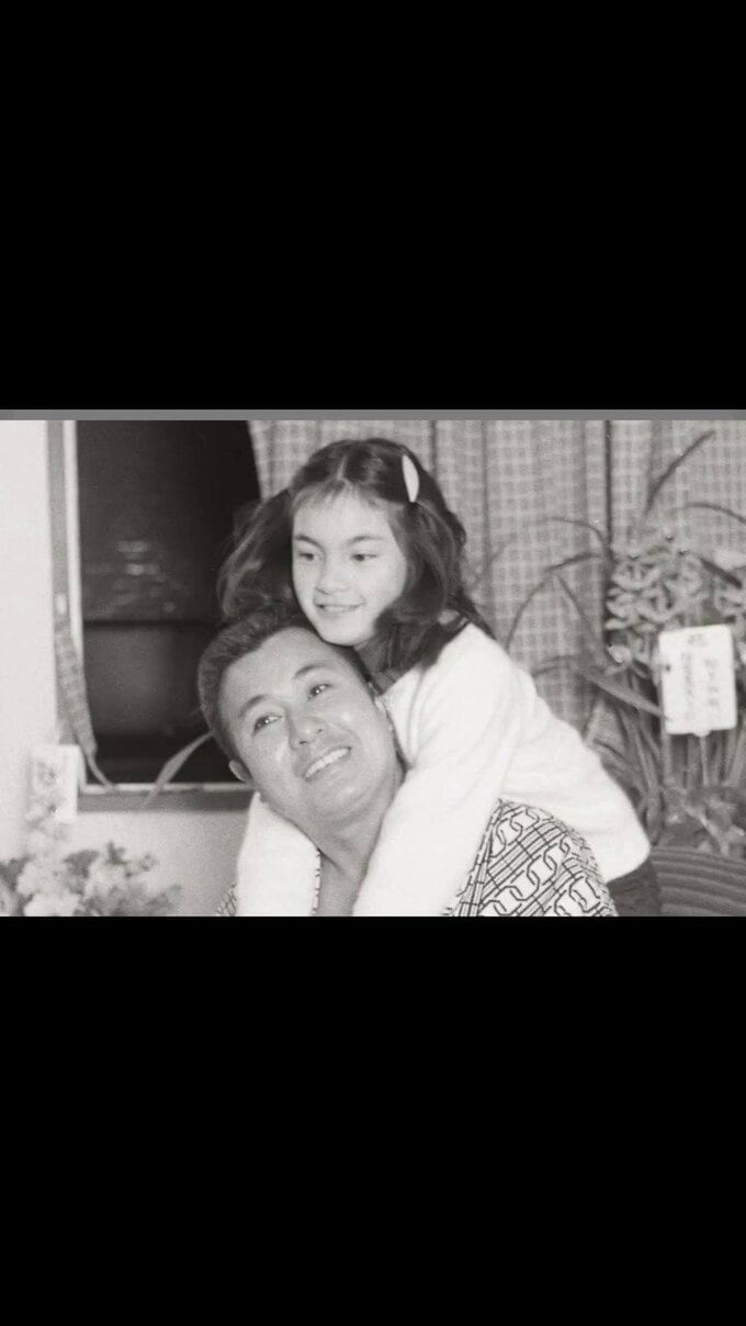 動画の1カットめに現れるのは成人式でしょうか、振り袖を着たアンナさんと、両側にいる父の辰夫さん・母のクラウディアさんによる3ショットです。続いて、少女時代のアンナさんと辰夫さんの仲の良い姿や、成長・成人したアンナさんと辰夫さんの海での姿などが現れています。