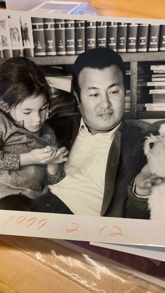 中には、幼少期のアンナさんと辰夫さんの写真の白枠に「1977.2.12」と書かれたモノクロの写真もあり、辰夫さんの充実した姿が見て取れます。