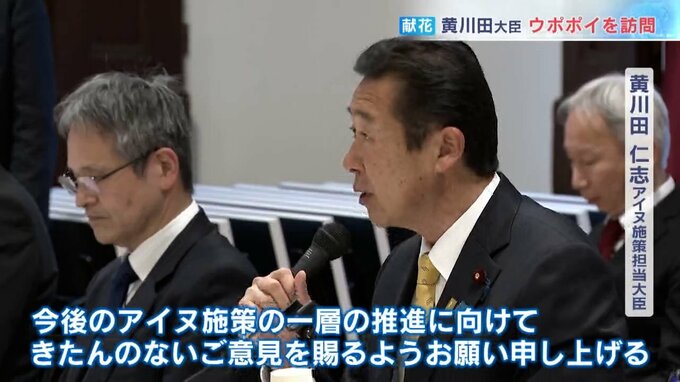 黄川田大臣は、13日午前、白老町の民族共生象徴空間「ウポポイ」を訪れ、アイヌ民族の慰霊施設に献花しました。