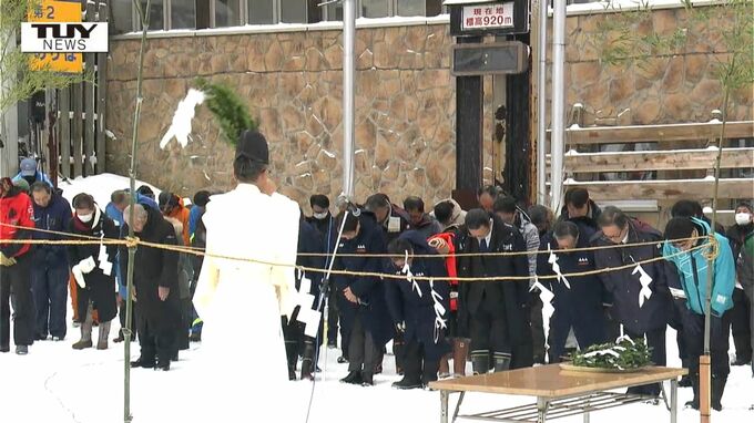 蔵王温泉スキー場上の台ゲレンデでは、地元の観光協会やスキー場関係者らが集まり、今シーズンの安全を祈願する神事が行われたあと、蔵王天狗を先頭に初滑りが行われ、オープンを祝いました。