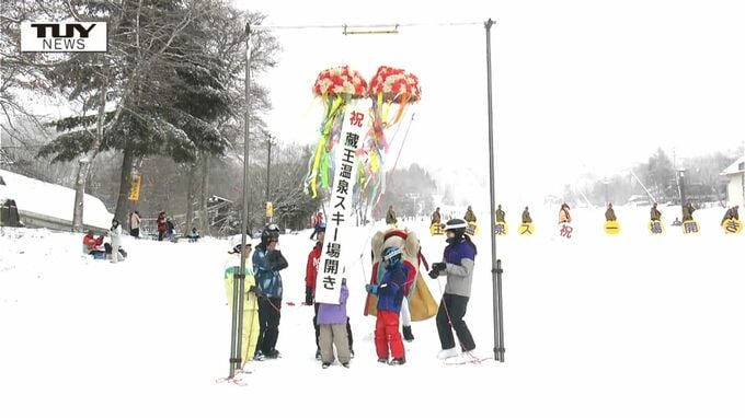 今シーズンで100年目を迎える山形市の蔵王温泉スキー場できょう、スキー場開きが行われ、スキーヤーやスノーボーダーらが初滑りを楽しみました。