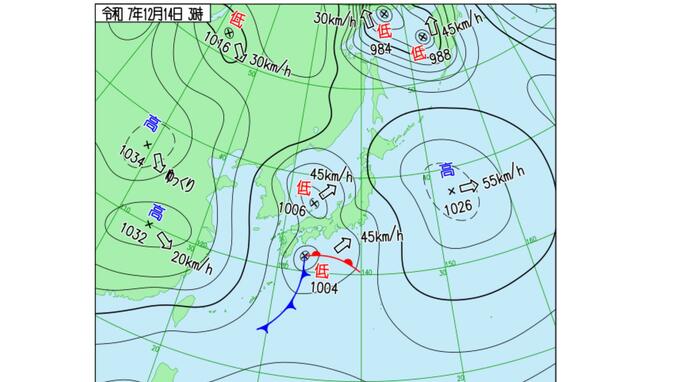 気象庁によりますと、日本海と日本の南を進む2つの低気圧が、共に急速に発達しながら北東へ進んでおり、西日本から北日本の広い範囲で大気の状態が不安定になっています。落雷、竜巻などの激しい突風、降ひょう、急な強い雨に注意してください。特に西日本では、14日(日)風が非常に強く吹く所があります。