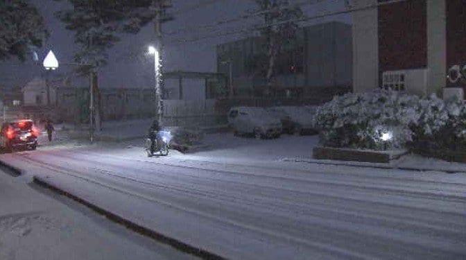 このあと、雪は次第に雨に変わり、昼過ぎにはやんでくる見込みですが、低気圧が急速に発達するため西よりの風が強まるでしょう。