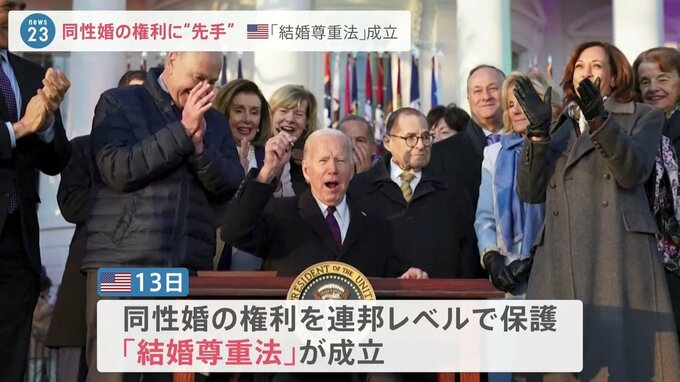 アメリカで12月13日、同性婚をめぐり歴史的な動きがありました。大勢の人が見守る中で行われたバイデン大統領による署名式。