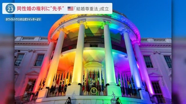 アメリカのバイデン大統領は13日、同性婚の権利を連邦レベルで保護する「結婚尊重法案」に署名し、法律が成立しました。これで同性婚の権利は全ての州で認められます。法律には「婚姻は男女間で行われる」と限定した1996年の法律の廃止も盛り込まれています。
