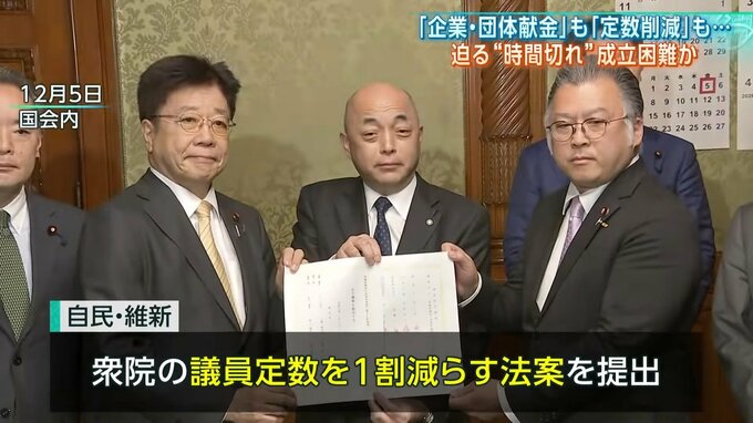 そうした中、自⺠と維新は5日、衆議院の議員定数を1割減らす法案を国会に提出。連立政権合意で交わした議員定数の削減を先に進めたい考えです。