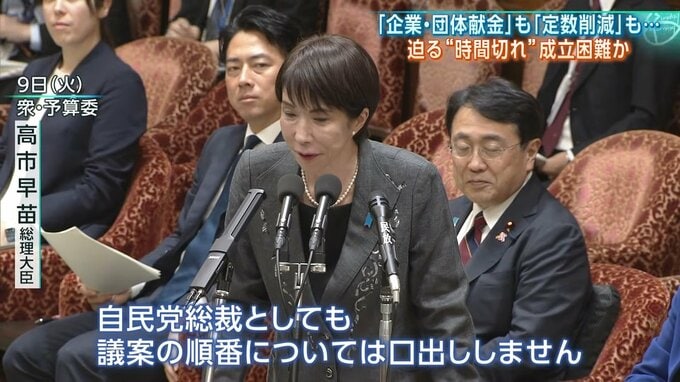 一方、野党側は先に法案を出した企業‧団体献金の議論が優先だと主張しています。議員定数削減の議論を優先しないことの確認を求められた高市総理は…
