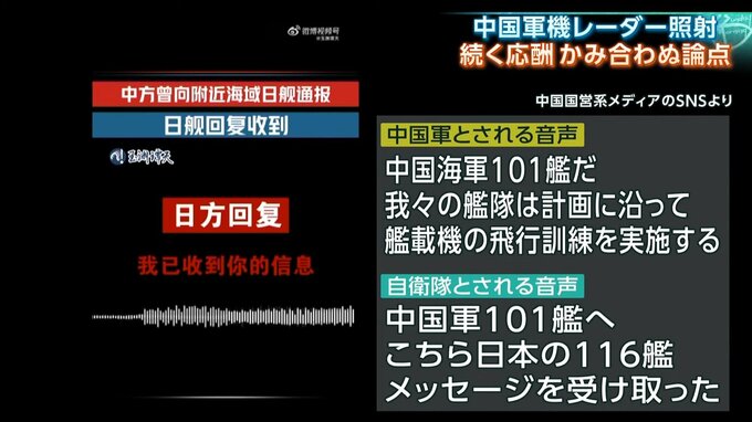 さらに9日には、中国国営系メディアが「最近日本側が煽り立てている、いわゆる『レーダー照射問題』。一体真相はどうなのか証拠をお見せします」とSNSに投稿。
