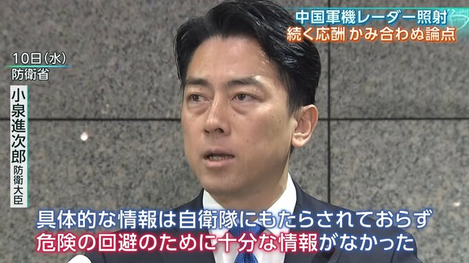 中国側は、小泉大臣が訓練について「事前の通報は確認していない」と述べていた点に反論。その後、小泉大臣は中国側から飛行訓練を開始する旨の連絡はあったとした上で…