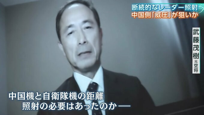 航空自衛隊で戦闘機のパイロットなどを務めた武藤茂樹・元空将は、中国機と自衛隊機の距離から照射の必要があったのか疑問を呈します。