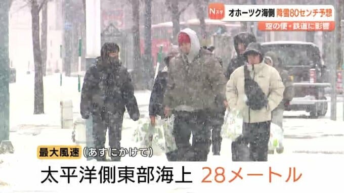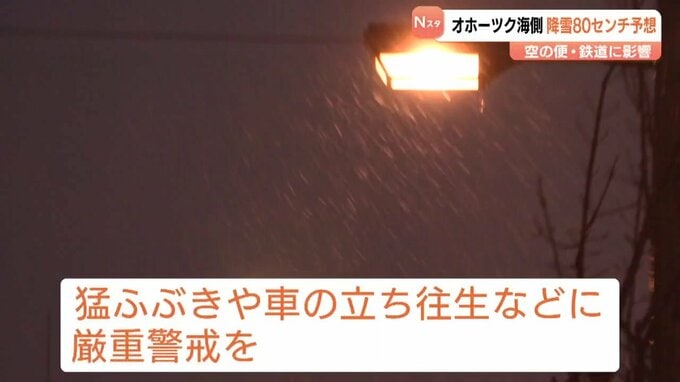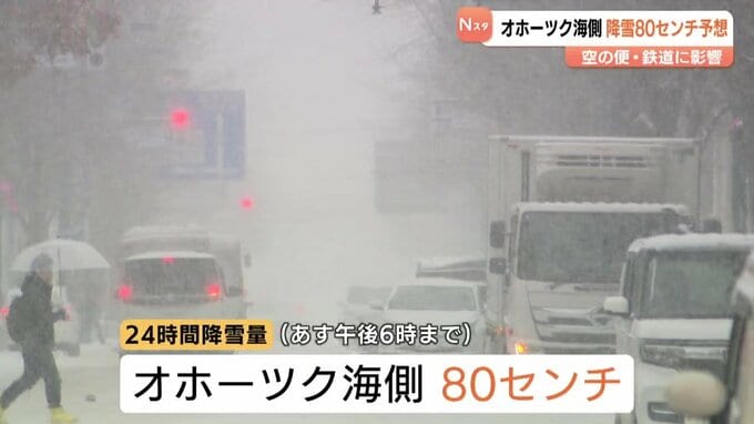 また、15日午後6時までの24時間で降る雪の量は、オホーツク海側で80センチと予想されています。