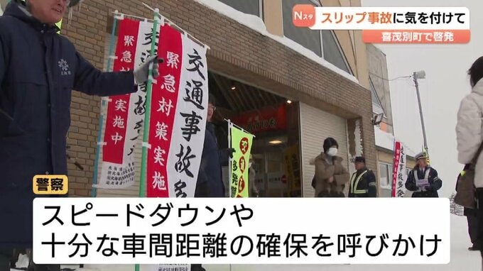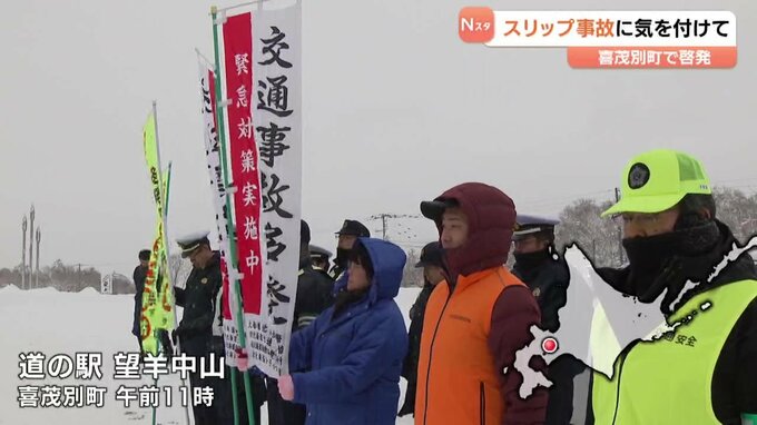 スリップによる死亡事故の急増を受け、14日、道警などが北海道喜茂別町でドライバーに安全運転を呼びかけました。