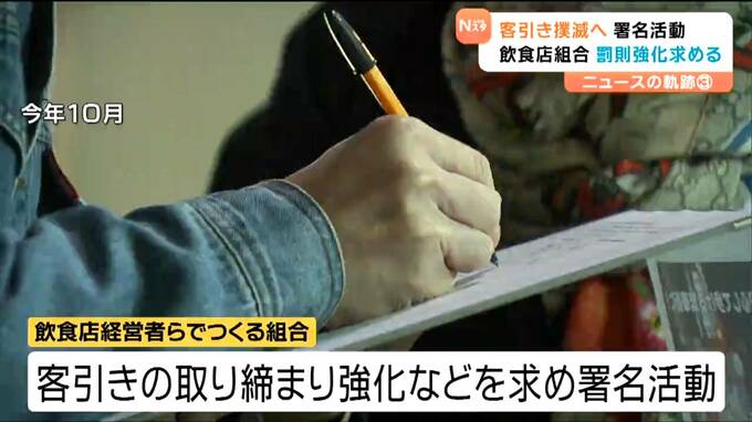2025年10月、国分町周辺では飲食店経営者らでつくる組合が客引きの取り締まり強化などを求め署名を集めました。