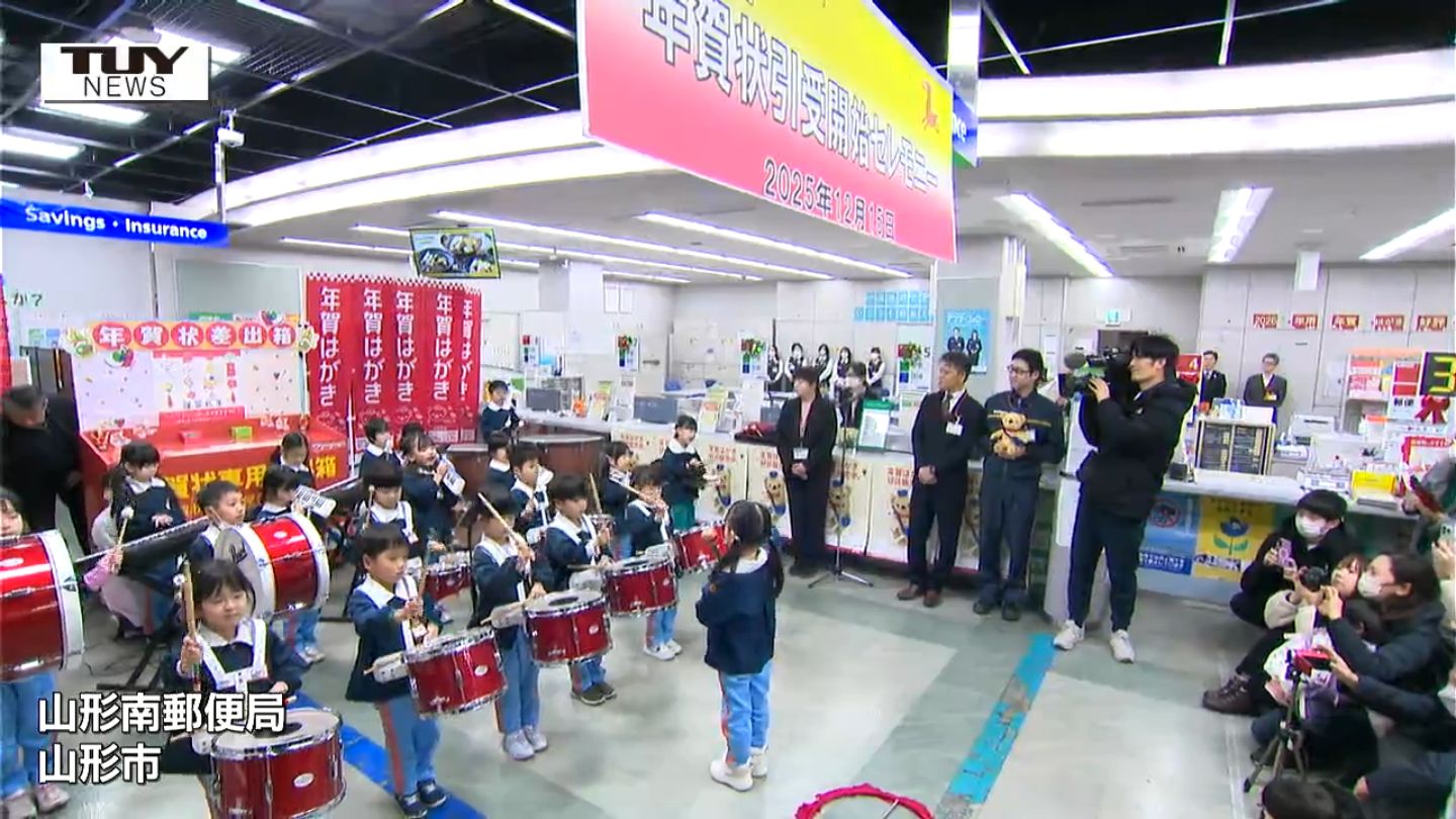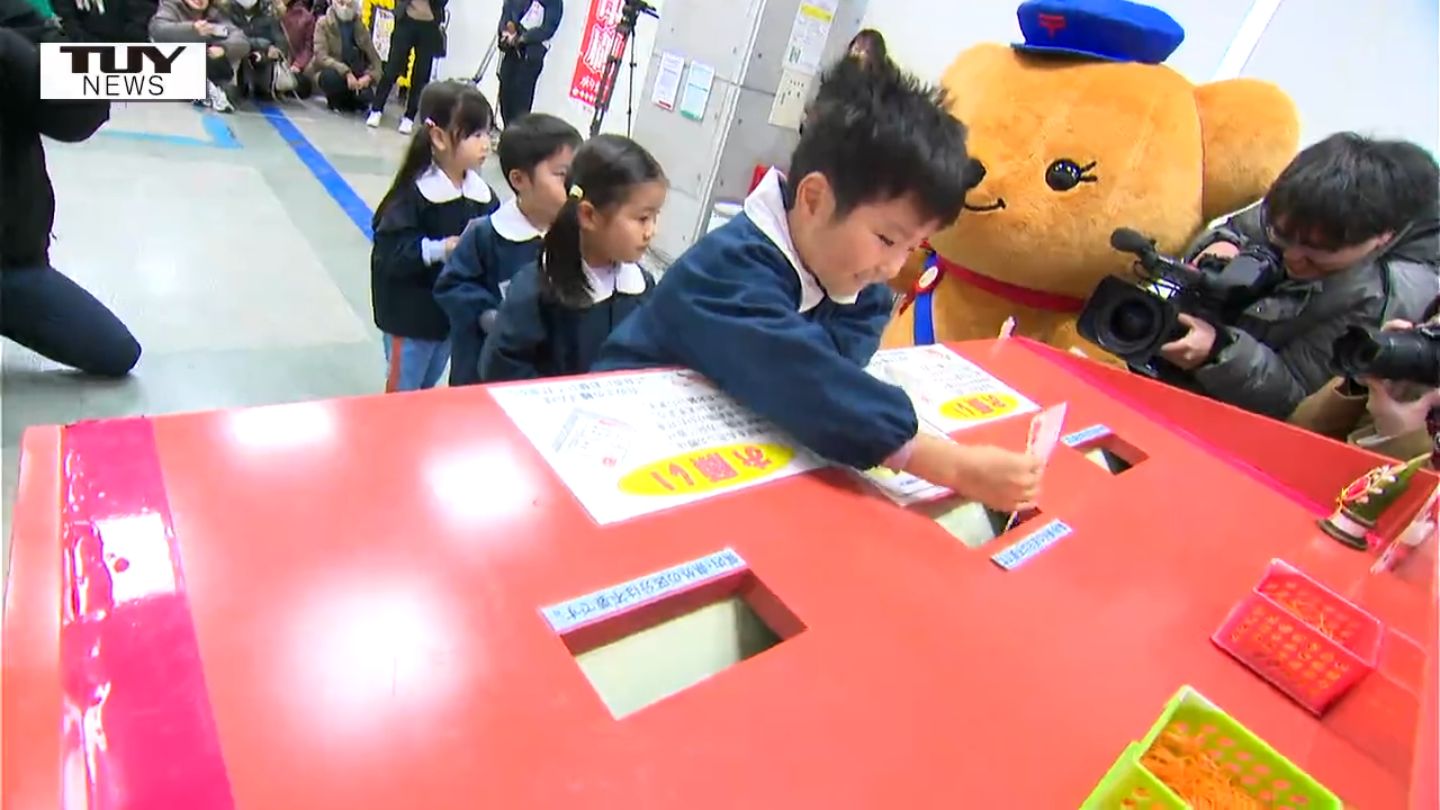年賀状の引き受けがきょうから全国一斉に始まり、県内でも多くの人が郵便局を訪れ思いを込めた一枚を投函しました。