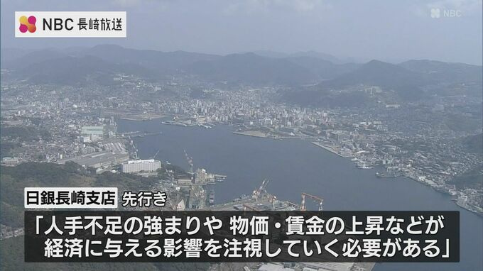 日銀長崎支店は、先行きについて「人手不足の強まりや物価・賃金の上昇などが経済に与える影響を注視していく必要がある」としています。