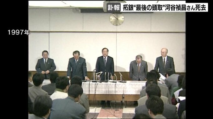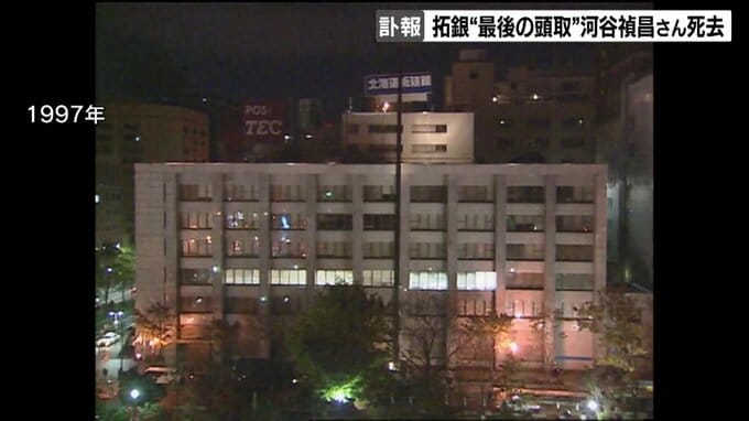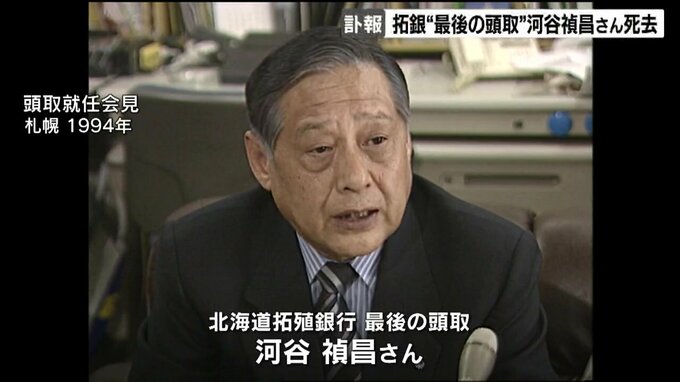 1997年に経営破綻した北海道拓殖銀行で、最後の頭取を務めた河谷禎昌さんが13日に亡くなりました。