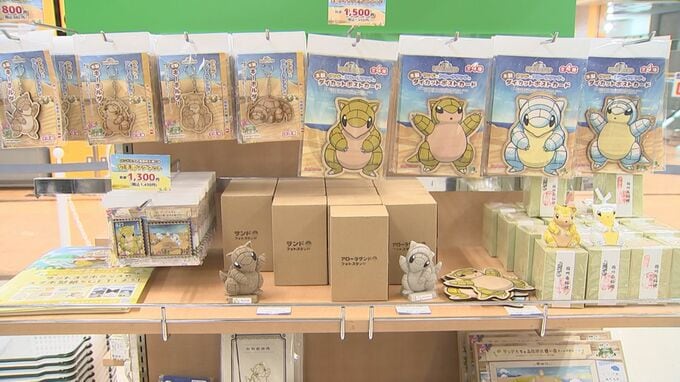 とっとりふるさと大使のサンド、アローラサンドのコーナーには、智頭杉で作られた木製のキーホルダーなどが並びました。