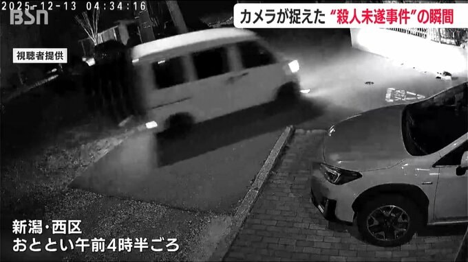 女性がしがみついた状態で車を発進させて女性を振り落としたとして13日、新潟市西区に住む男が殺人未遂の疑いで逮捕されました。犯行の様子と見られる一部始終を防犯カメラがとらえていました。