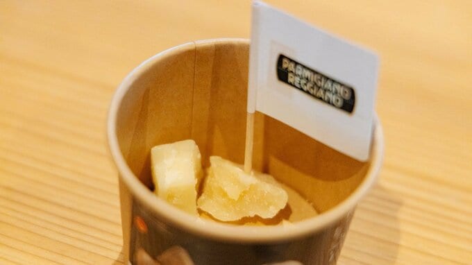 試食で提供されたパルミジャーノ・レッジャーノ。