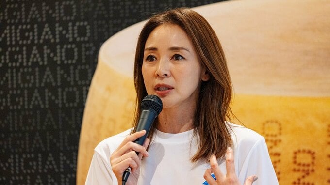 トークを展開したのは、モデルのSHIHOさんと元バドミントン選手の潮田玲子さんの二人。デビュー以来カリスマ的な人気を誇るSHIHOさんと、元オリンピアンの潮田さんの共通項は「ナチュラルビューティー」。熟成食品で、天然の原料にこだわるパルミジャーノ・レッジャーノが「大好き。だから今日は楽しみにしていた」というSHIHOさん。一方の潮田さんは「アスリートとチーズには深い関係がある」という。