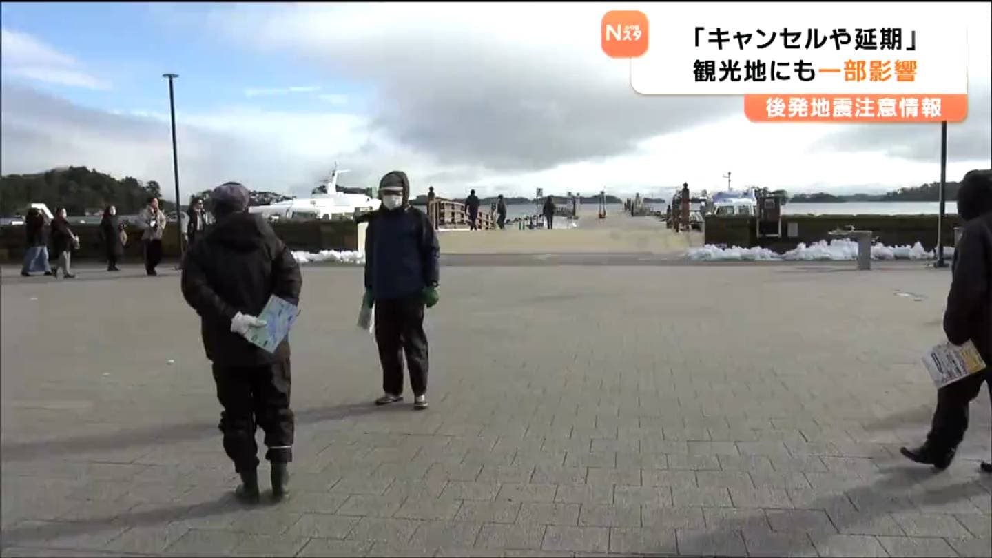 12月8日の地震を受け、北海道・三陸沖後発地震注意情報が発表されています。宮城県松島町では遊覧船の予約キャンセルなど、一部に影響が出ているということです。初の日曜日となった14日は、雪の影響もあり観光客の姿はまばらでした。