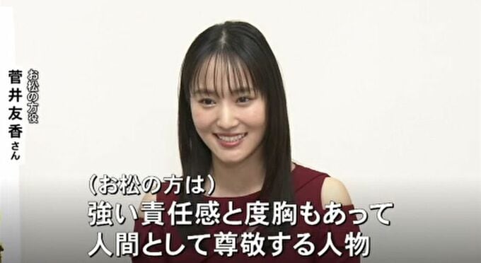 ▽お松の方役の菅井友香さん…「強い責任感と度胸もあって、人間として尊敬する人物。利家と松への敬意を胸にしっかりと愛を持って演じさせていただきたい」