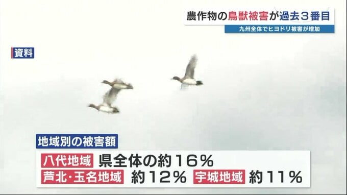 前の年度からヒヨドリの被害が約8300万円増えていますが、その理由は分かっておらず、九州全体でヒヨドリの被害が増えたということです。