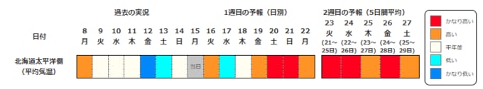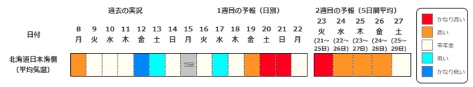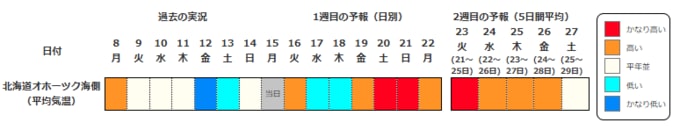 2週間気温予報(北海道地方の日本海側・オホーツク海側・太平洋側)