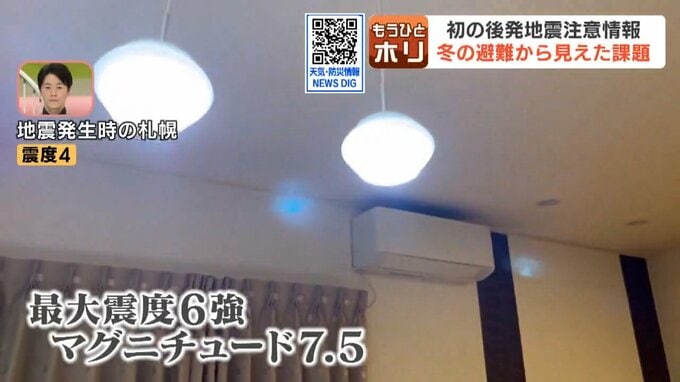 後発地震注意情報の発表から、まもなく1週間。冬の避難に課題も見えてきました。8日夜に発生した青森県東方沖地震。道内でも函館で震度5強など、各地で大きな揺れを観測。太平洋沿岸中部に一時、津波警報が発表さ…