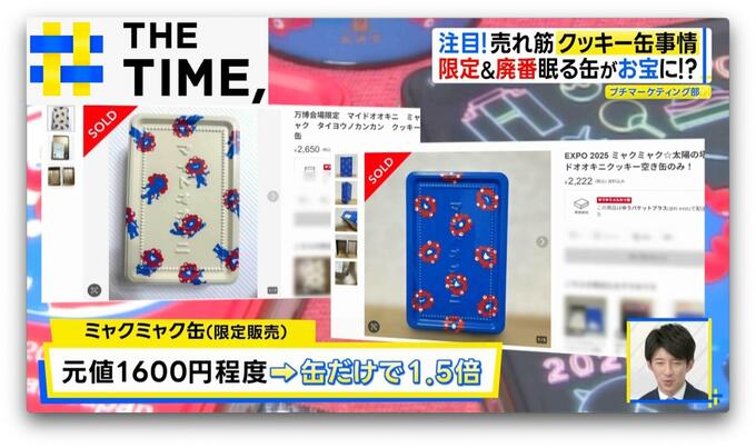 クッキー缶人気はフリマサイトにも広がり、大阪万博で販売された「ミャクミャク缶」は、中身がなくても1.5倍の値段に!